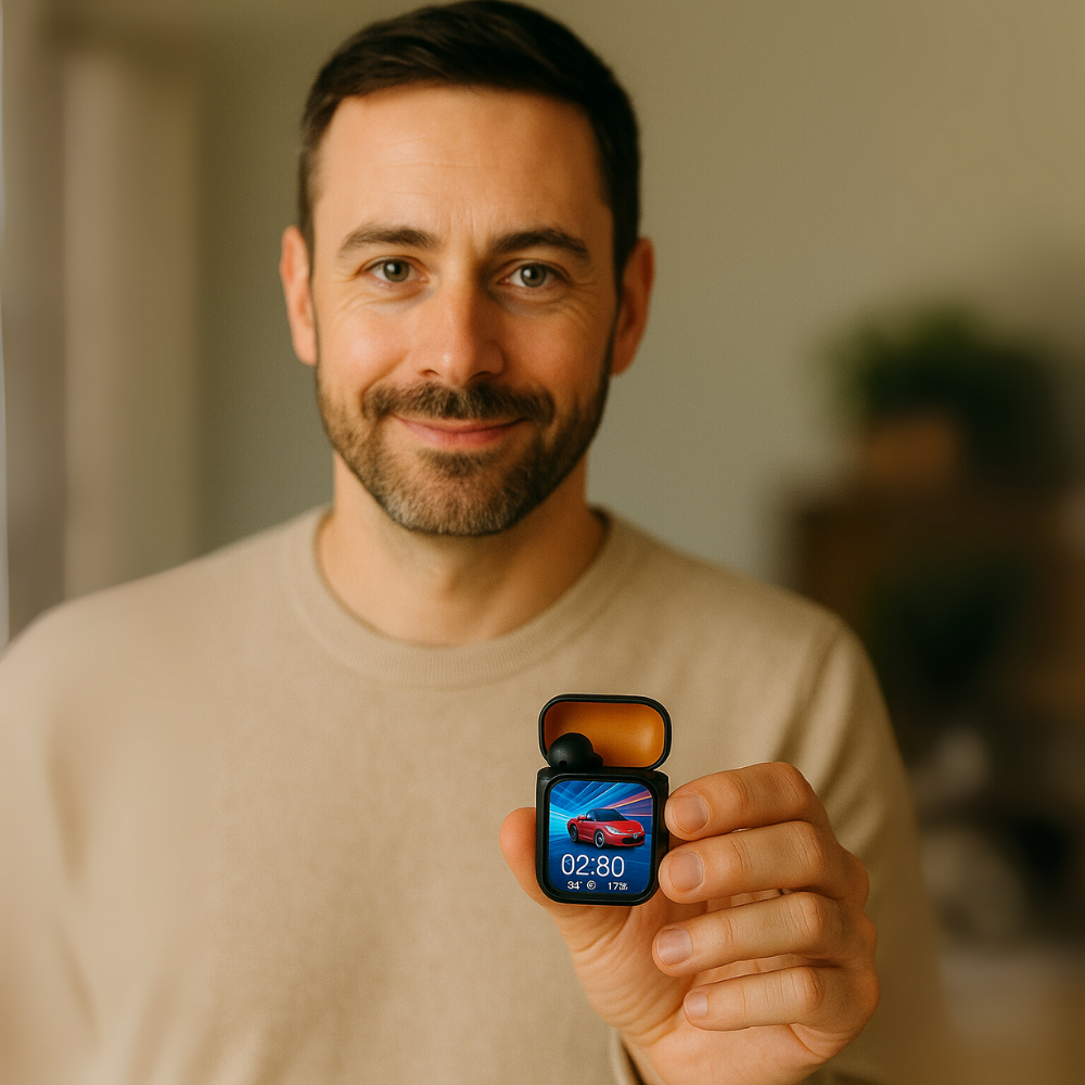 Guia rápido + Estojo de carregamento + Cabo USB-C + Cordão + Auscultadores 🎧 Os principiantes começam a usar em segundos, super prático de transportar ~